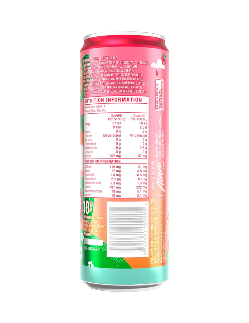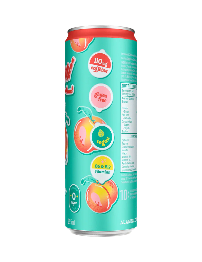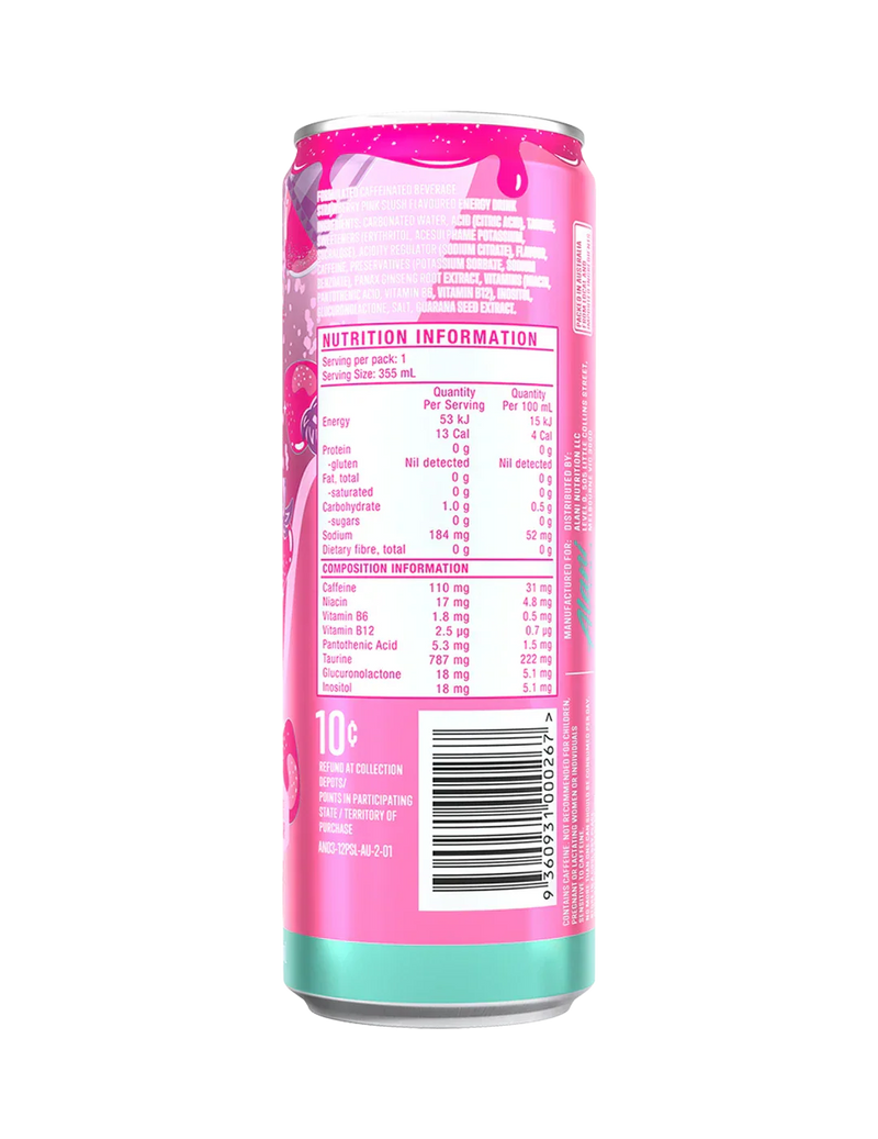 Alani Nu Energy Drink is your ultimate pick-me-up for busy days, tough workouts, and everything in between. With 110mg of caffeine per can, this lightly sparkling energy drink delivers a smooth, refreshing boost—without the crash. What sets Alani Nu apart is its clean energy formula. It's sugar-free, with only 10–15 calories per can, making it perfect for those watching their diet. Plus, it's packed with B vitamins (B6 & B12), taurine, L-theanine, and ginseng to support energy, focus, and stamina. Whether you're hitting the gym, studying for exams, or just need a mid-day boost, Alani Nu Energy Drink is the perfect companion.