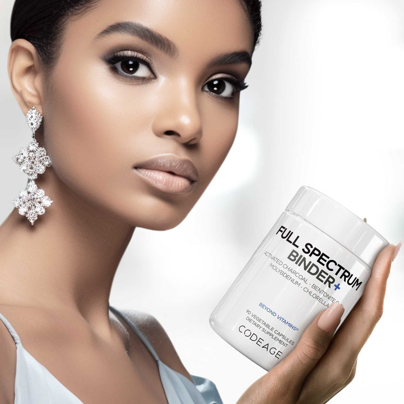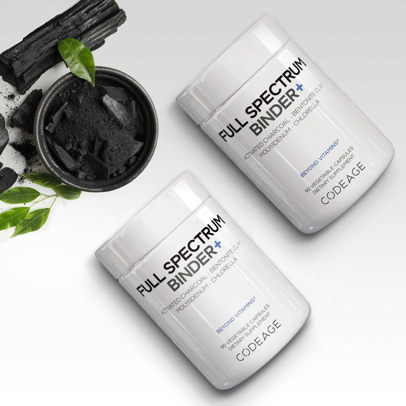 Codeage Full Spectrum Binder+ supplement combines molybdenum, activated charcoal, and bentonite clay, enriched with fulvic and humic acids and organic extracts. This powerful formula features molybdenum as Albion® molybdenum glycinate chelate, activated charcoal, and bentonite clay, designed to complement the body's natural processes and offer a balanced approach to daily supplementation.