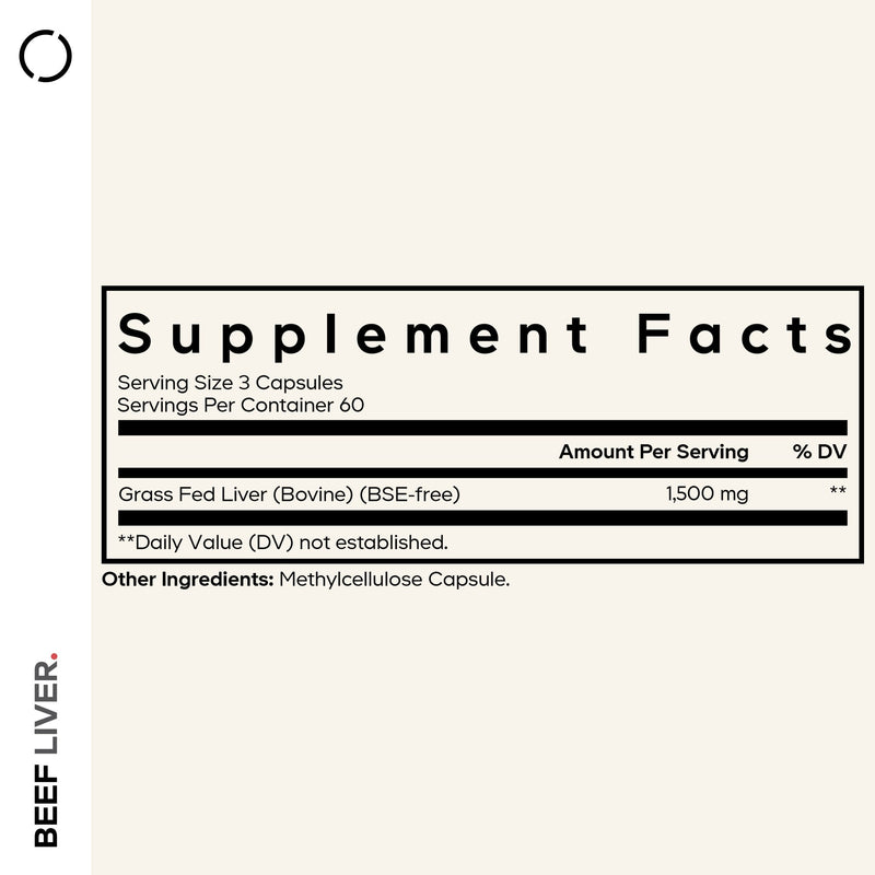 Each serving provides 1500mg of grass-fed, pasture-raised beef liver, rich in vitamins A and B12, iron, zinc, and omega fatty acids. Our freeze-dried, non-defatted, and desiccated beef liver supplement preserves the natural nutrient profile.