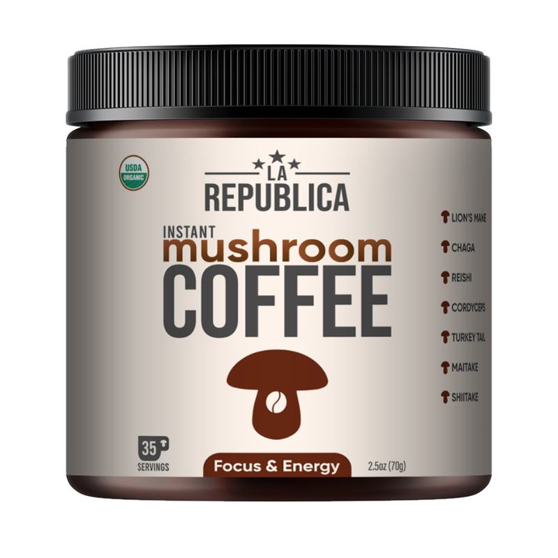 Elevate your daily cup with LA Republica's Instant Mushroom Coffee 70g, a harmonious blend of seven superfood mushrooms.