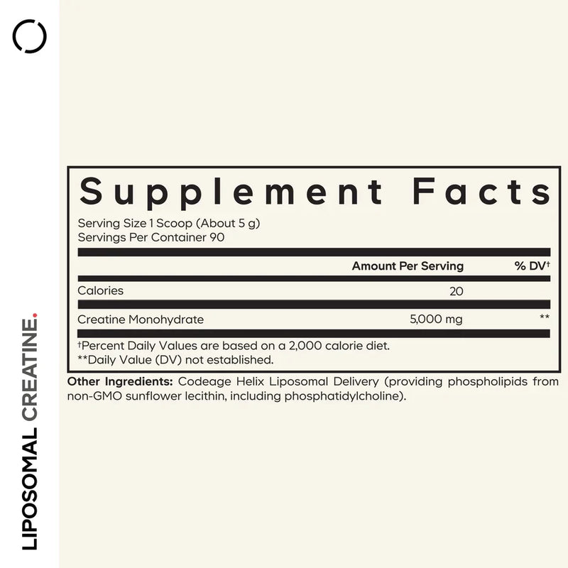 | Ingredients | Liposomal Creatine Monohydrate, Phospholipid Complex from Non-GMO Sunflower |