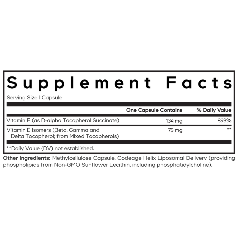 Boost your antioxidant levels with Codeage's Liposomal Vitamin E+ supplement, featuring a broad-spectrum blend of vitamin E isomers, including D-alpha, beta, gamma, and delta tocopherols.