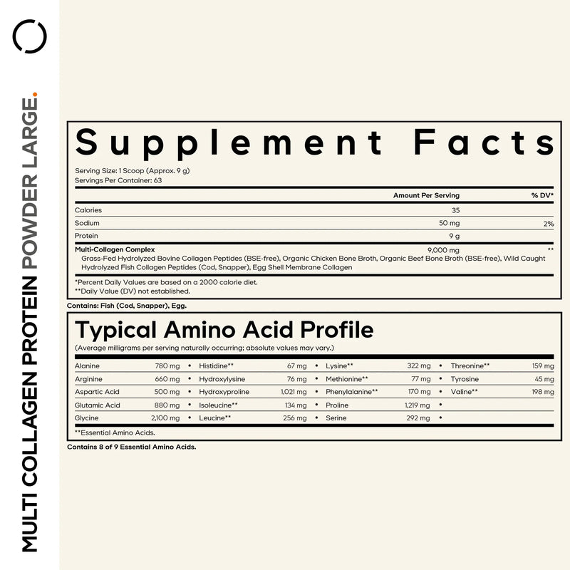 | Food Sources | Grass-fed bovine, bone broths, wild-caught white fish, eggshell |