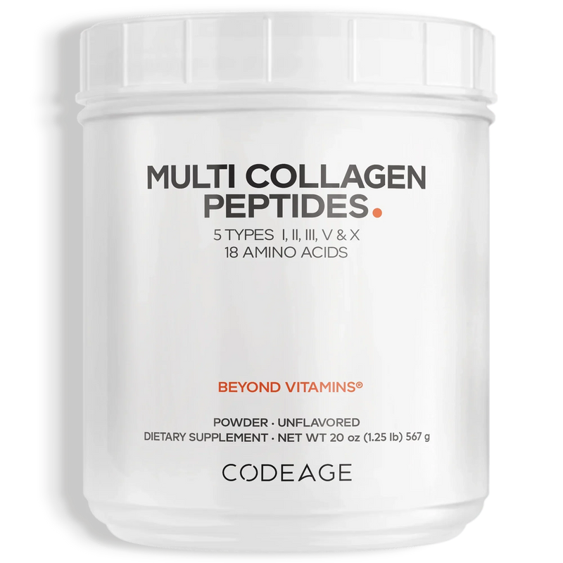 Boost your wellbeing with Codeage Multi Collagen Peptides Powder, a masterful blend of five collagen types from five different food sources.