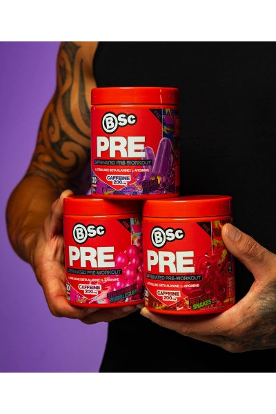 vailable in three delicious flavours - Strawberry Bubblegum, Grape Ice Pop, and Red Sour Snakes - our pre-workout is low in calories and contains no added sugar. Key benefits include enhanced muscle performance, increased power, and improved focus. With PRE Caffeinated Pre-Workout, you can tackle even the toughest training sessions with ease. Mix 10g (1 heaped scoop) with 300ml cold water 15-30 minutes pre-training for optimal results.