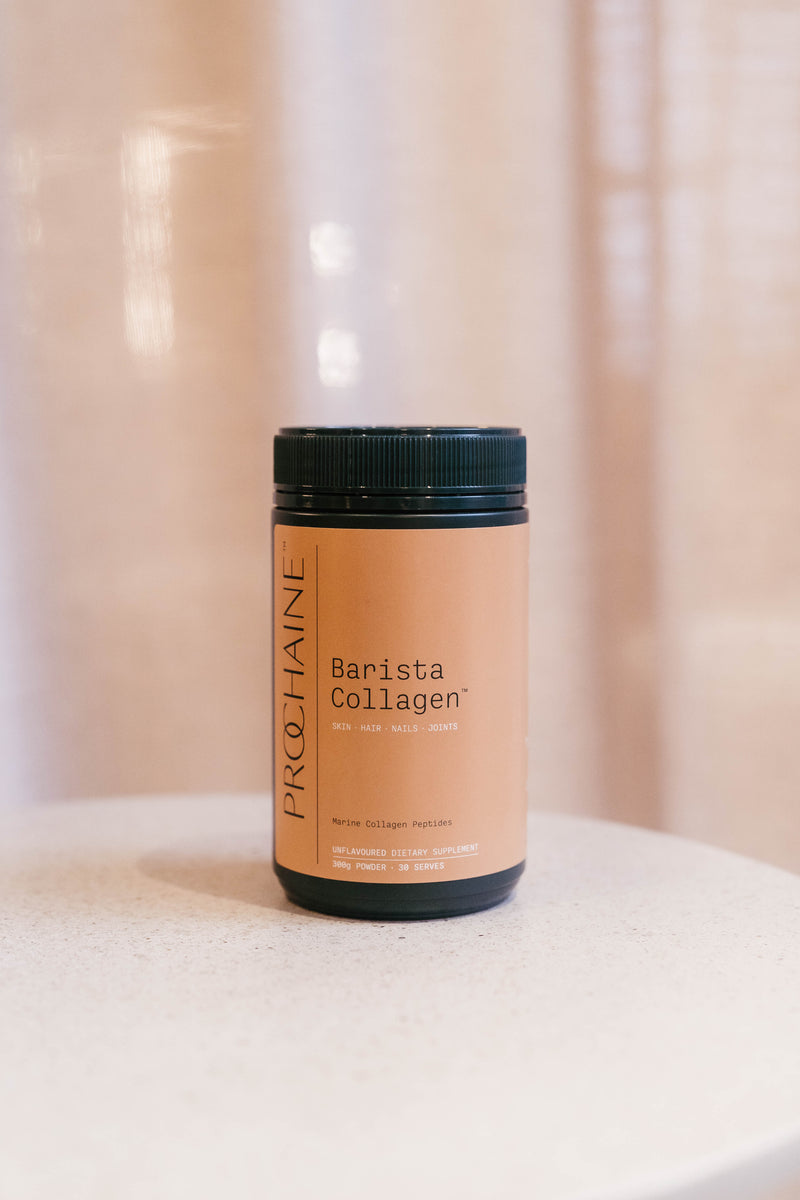 Elevate your daily brew with Prochaine Barista Collagen, a premium marine collagen peptide blend that seamlessly mixes into your favourite coffee or smoothie.