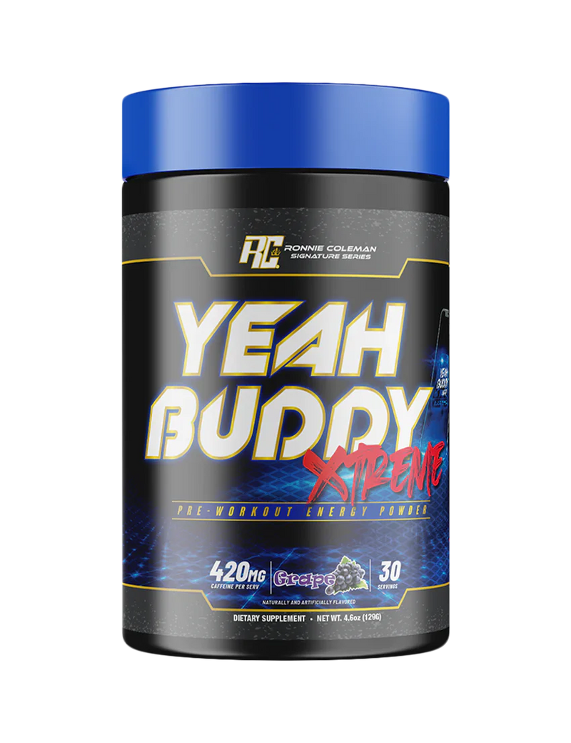 Yeah Buddy Xtreme is your go-to for maximum intensity, clean energy, and no-compromise focus. Whether you're smashing the gym or chasing serious performance gains, this pre-workout has got you covered. It's available in several delicious flavors, including Blue Raspberry, Fruit Punch, Green Apple, Grape, and Cherry Limeade. So why wait? Try Ronnie Coleman's Yeah Buddy Xtreme pre-workout today and take your workouts to the next level. With its powerful formula and great taste, you'll be hooked from the first scoop. Yeah Buddy Xtreme is the perfect choice for anyone looking for a high-quality pre-workout that delivers results. It's time to take your fitness journey to new heights with Ronnie Coleman's Yeah Buddy Xtreme pre-workout.