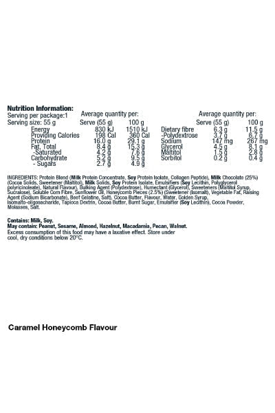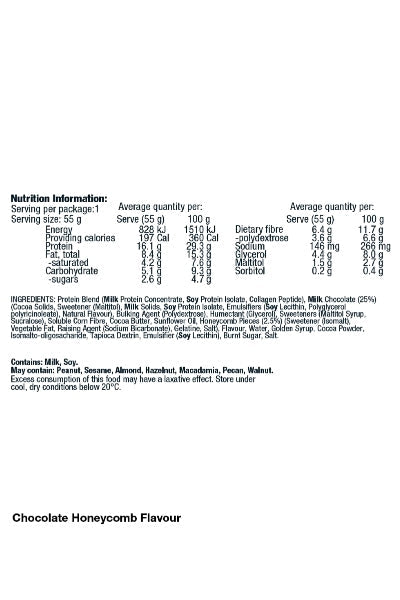 The convenient packaging makes them easy to take on-the-go, ensuring you stay on track with your health and fitness goals. Contains milk and soybean. May contain peanuts, tree nuts, and sesame. Enjoy the Violet Crumble Low Carb Bar as a post-workout recovery treat, or as a healthy snack to curb your cravings. With its unique blend of taste and nutrition, this bar is sure to become your new favourite companion on your fitness journey.